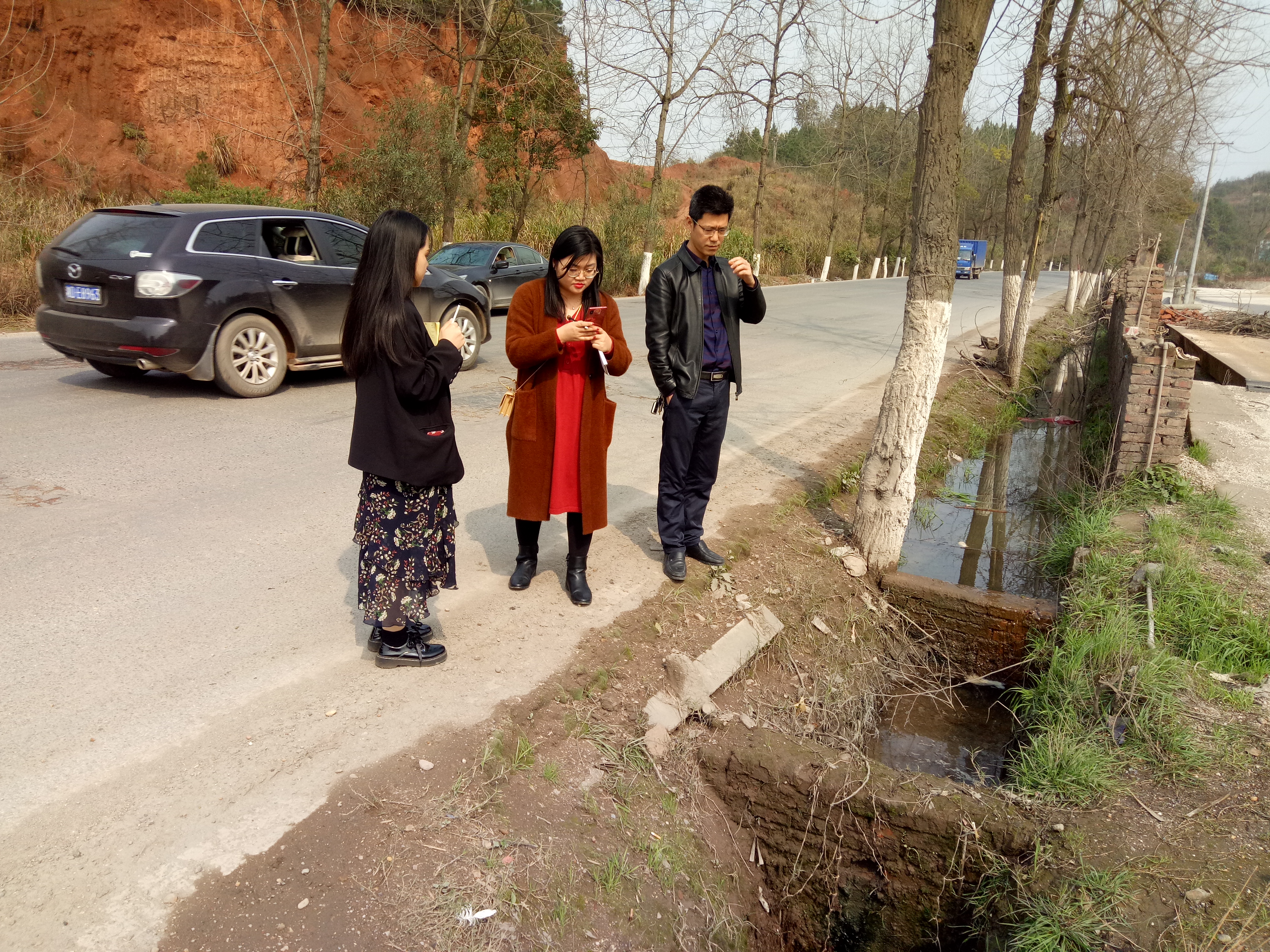 圖1:對(duì)需新建水溝及檢查井位置拍照記錄