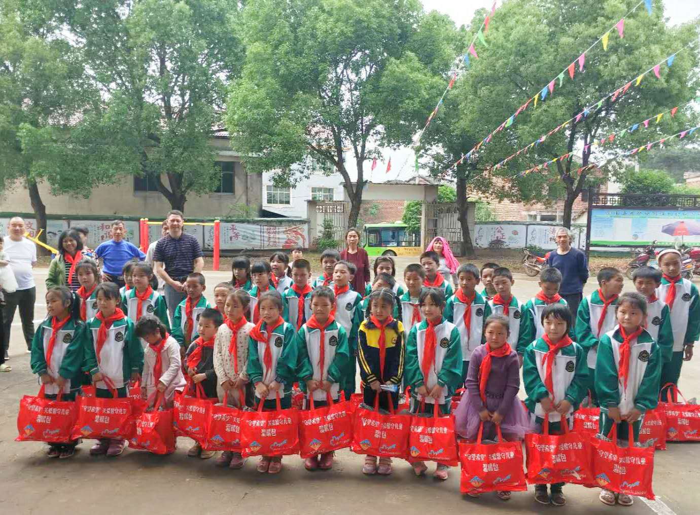 圖3:為孩子們送來(lái)夏季校服、涼鞋、學(xué)習(xí)用品等物資