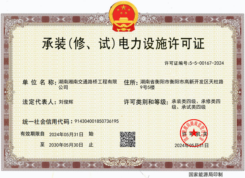 承接(修、試)電力設(shè)施許可證